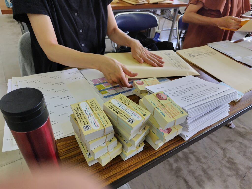 【子どもたちにチャイルドラインのカードを届ける作業をします】
